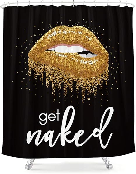 Amazon Com Lightinhome Get Naked Shower Curtain 60wx72h Inch Golden Sexy Lips Black White Alphabet Script Funny Kiss Background Home Bathtub Decor 12 Pack Plastic Hook Home Kitchen