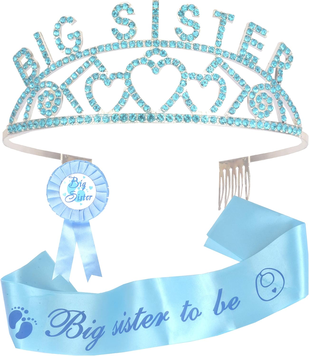 Amazon Com Big Sister Big Sister Crown Sash And Pin I Am Going To Be Big Sister Daughter Get Promoted To Big Sisters Idea Gift Set Satin Big Sister To Be For Baby